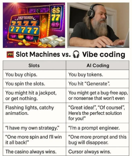 arrow-up1573arrow-down1imageSlot Machines vs. Vibe Codinglibranet.defu@libranet.de to Programmer Humor@programming.dev · 14 days agomessage-square29linkfedilinkfile-text