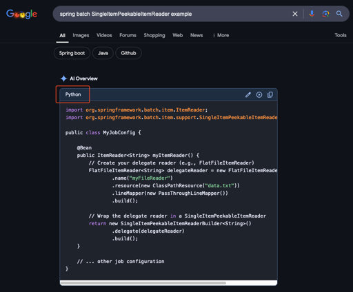 Vordimous@lemmy.ml to Programmer Humor@lemmy.ml · 10 months agoGoogle AI thinking Java is Pythonlemmy.mlimagemessage-square0linkfedilinkarrow-up11arrow-down10