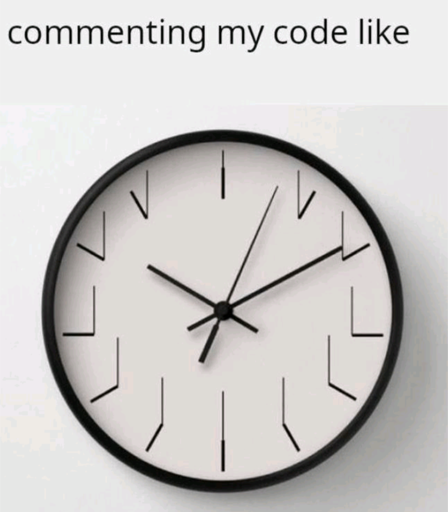 arrow-up14arrow-down1imageComenting codelemmy.mlVordimous@lemmy.ml to Programmer Humor@lemmy.ml · 1 year agomessage-square1linkfedilink
